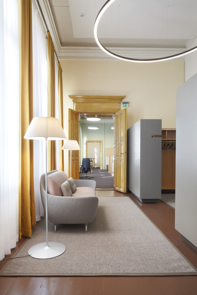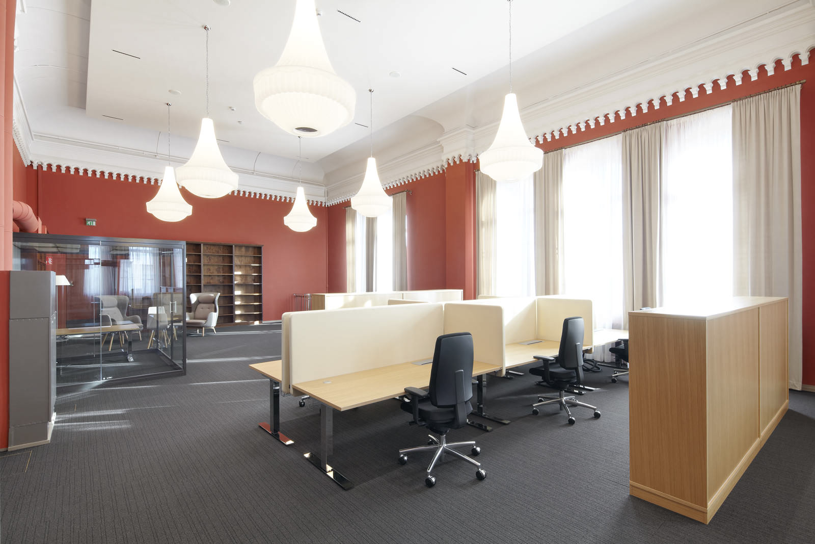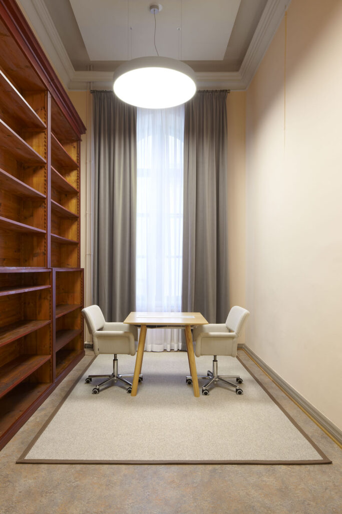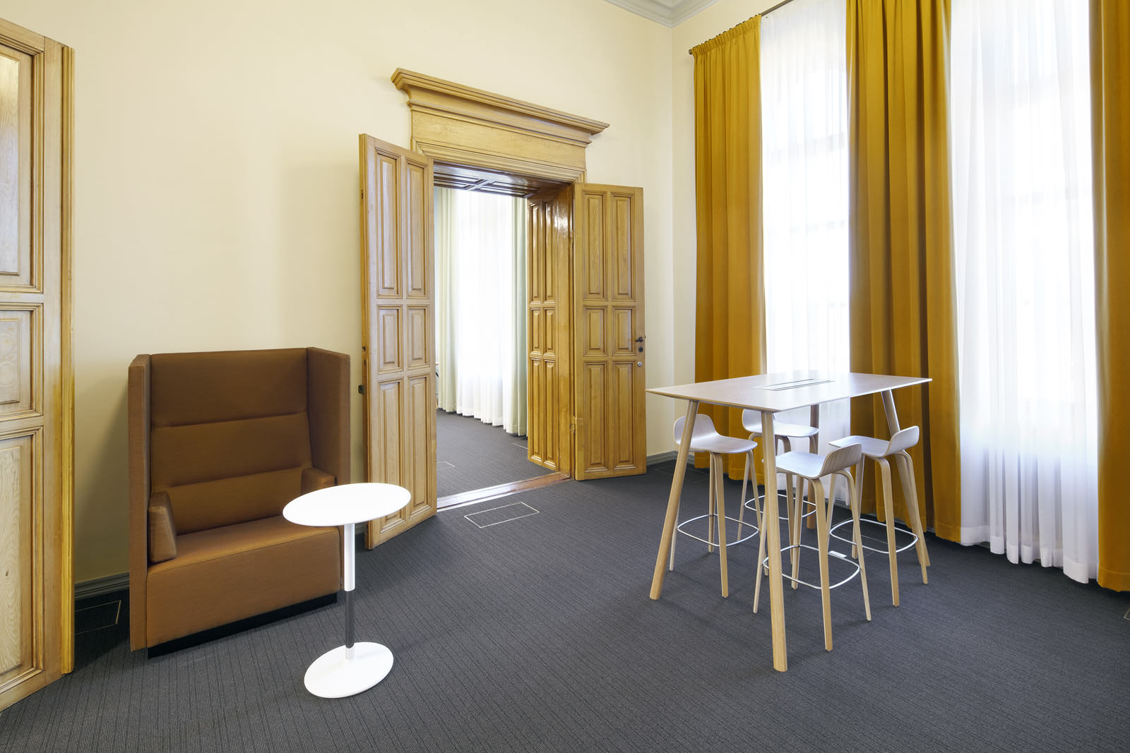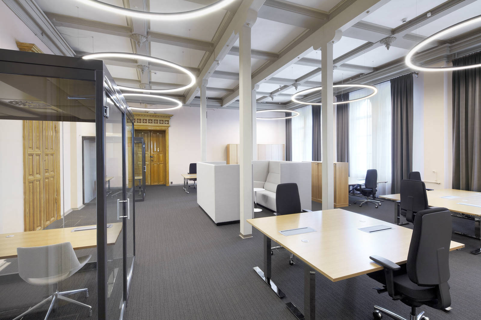 The building originally housed a historical-ethnographic museum, with a Mineral Cabinet as well as chemistry laboratories and a lecture hall. Over time, the building has hosted several university departments and most recently the University Museum. In 2015, the building was transferred to the Senate. Its convenient location next to the Government Castle in the Ministry Quarter led to the decision to convert the building into Premises of the Prime Minister’s Office. At the same time, it was investigated how a modern multi-space work environment could be implemented in a historic building. The building is protected in the town plan and by Government decree.