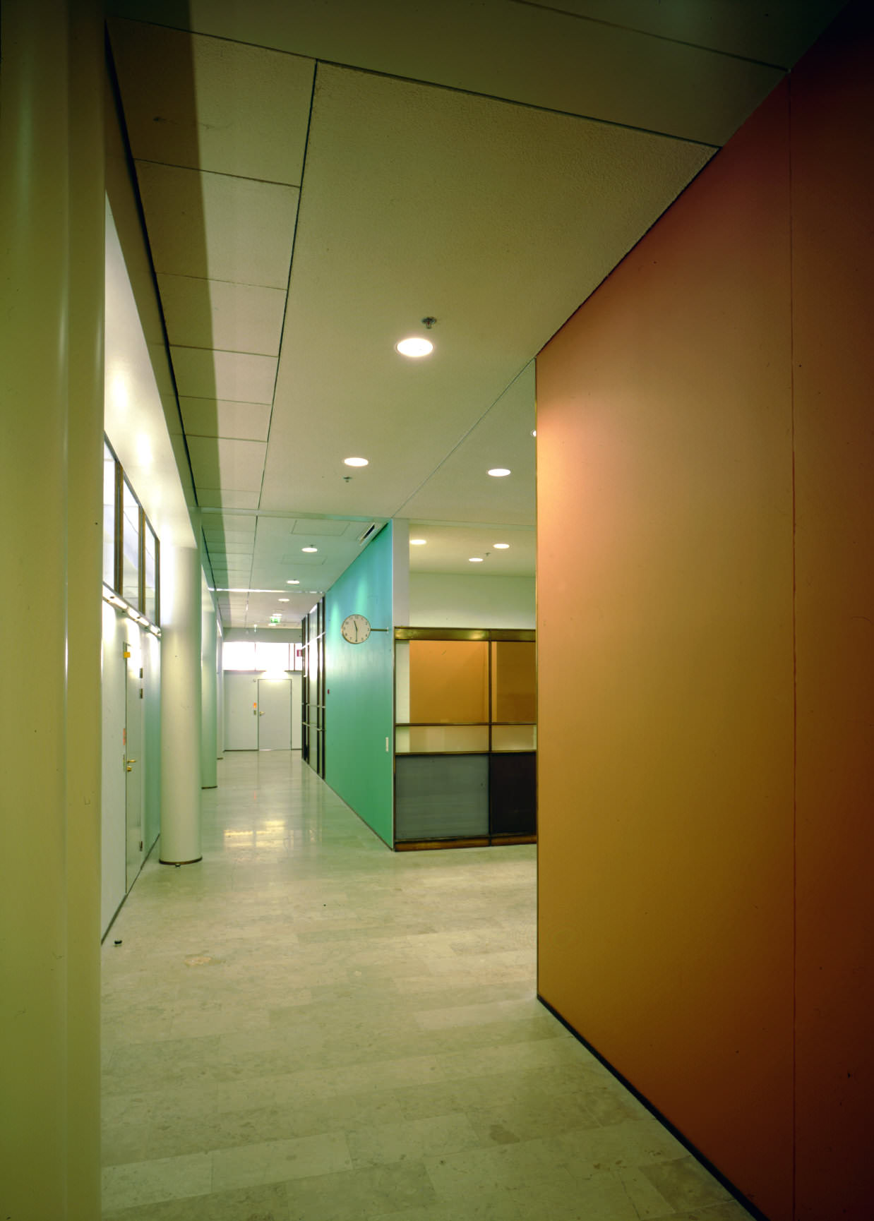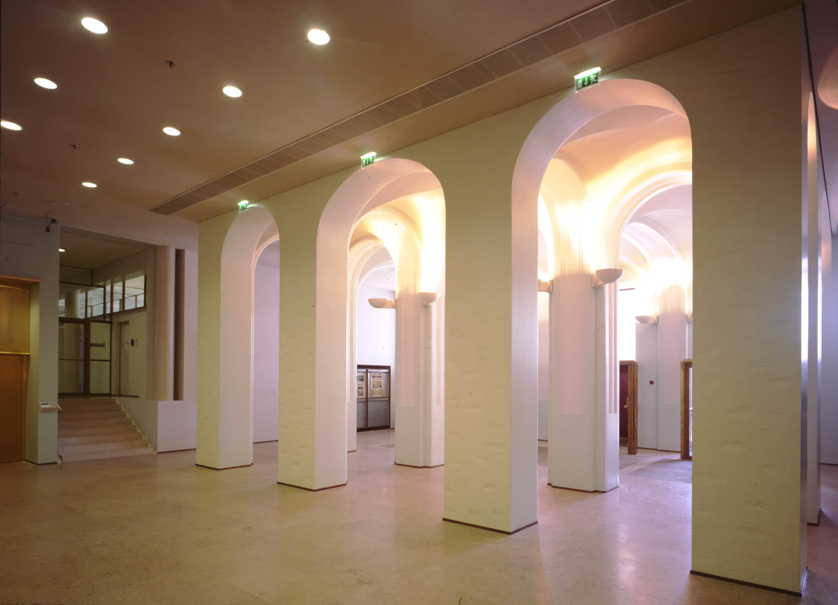 Helsinki City Hall includes the former 19th-century Society House, designed by C. L. Engel, in the southern part of the block. The building was converted into a town hall in the 1960s, according to Professor Aarno Ruusuvuori’s drawings. The town hall complex also contains parts of the 19th-century trading houses and Ruusuvuori’s 1980s Council Hall in the heart of the block. The oldest parts of the block are from the early 1830s. The building based on Engel’s design included a hotel and restaurants. Its façades are in the Empire style, like the other buildings around Senate Square. The building has since been raised and expanded in stages. The only surviving 19th-century interiors are the ballroom, the corner rooms and the vestibule defined by arched vaults. In the 1960s, town hall operations expanded to the entire Lion’s Quarter, where the old Society House was located. Ruusuvuori’s plan preserved the façades but radically changed the interior.