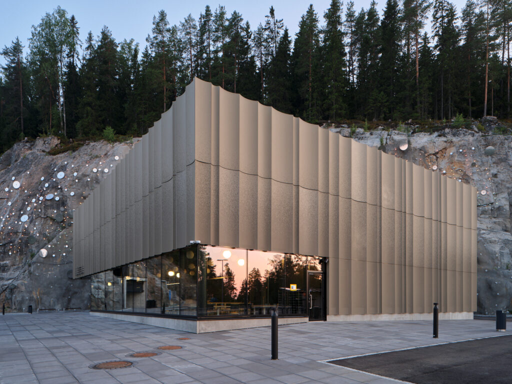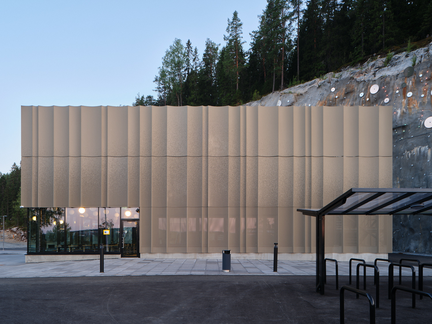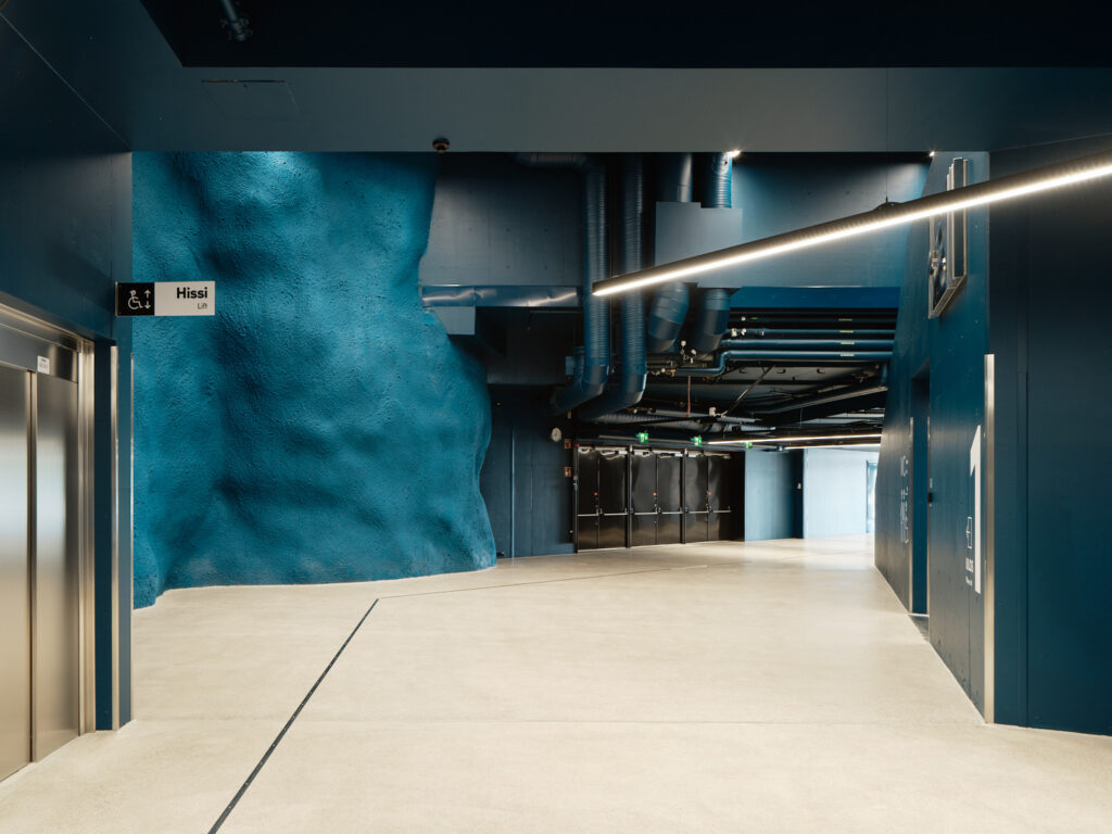 A collective work of art called Pulssi by artists Pasi Rauhala and Jaakko Niemelä is executed on the surrounding rockface. The facade perforation and lighting were adjusted to form a coherent whole with the artwork.