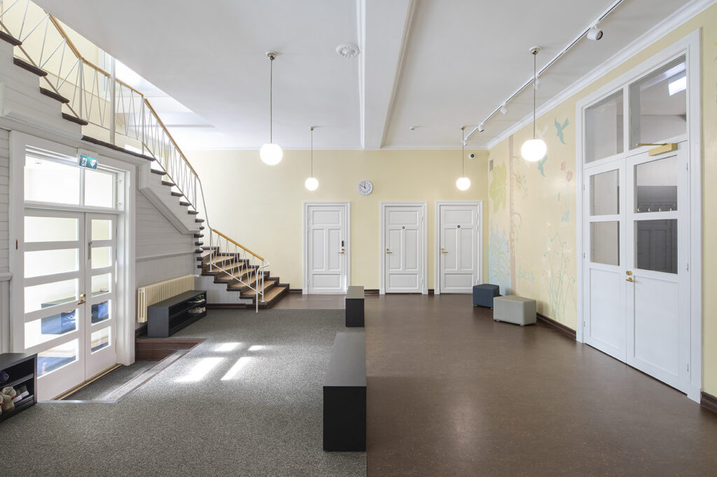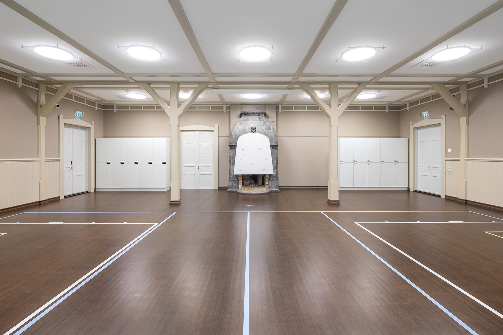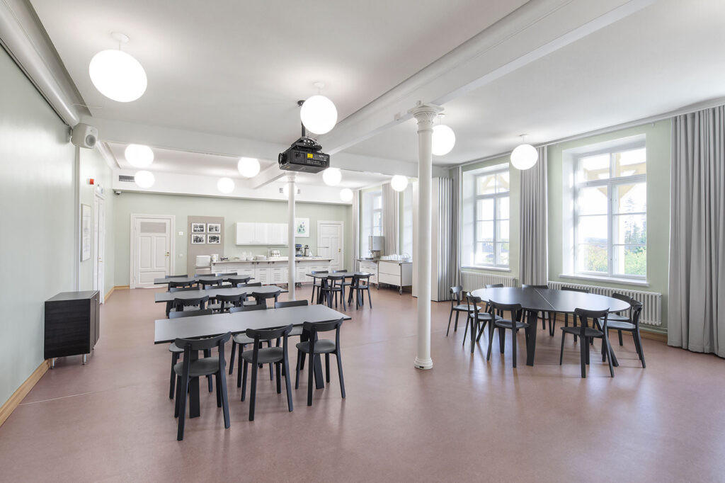 We carried out the comprehensive renovation of Opistola, the main building of the school, in accordance with the principles of building protection and in consultation with the National Board of Antiquities. For example, a previously demolished wood balcony was returned to the east side, and the valuable original appearance of the gymnasium/ballroom was preserved. In addition to study facilities and the 5-person housing unit, the building has a kitchen, dining hall and gymnasium/ballroom that serves the entire campus. The building use remained unchanged, but the facilities and their location were designed to better serve the needs of today’s reform school operations.